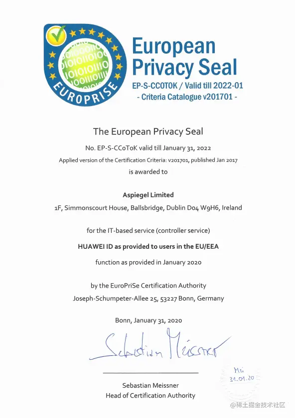 华为帐号通过欧洲隐私保护认证EuroPriSe