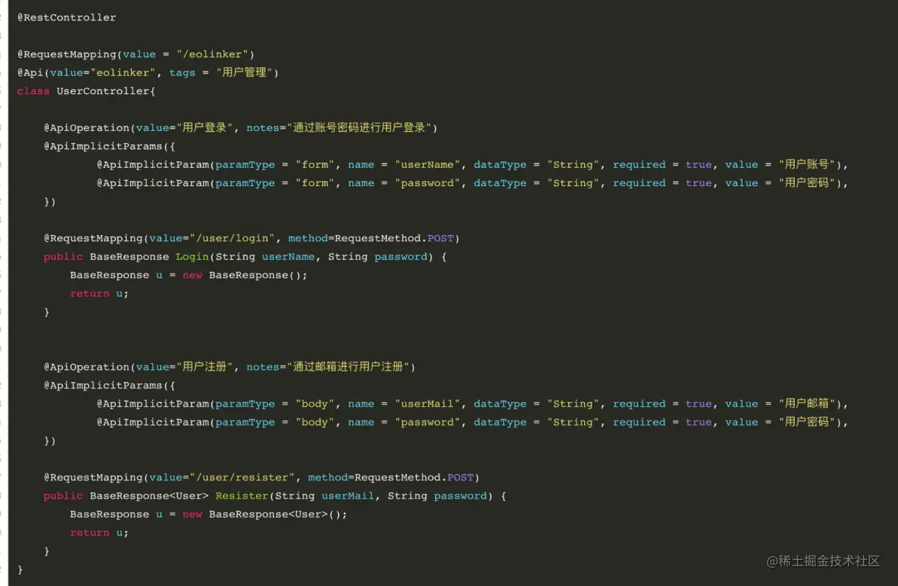 @Api 用在请求的类上,表示对类的说明 tags="说明该类的作用,可以在UI界面上看到的注解" value="该参数没什么意义,在UI界面上也看到,所以不需要配置"