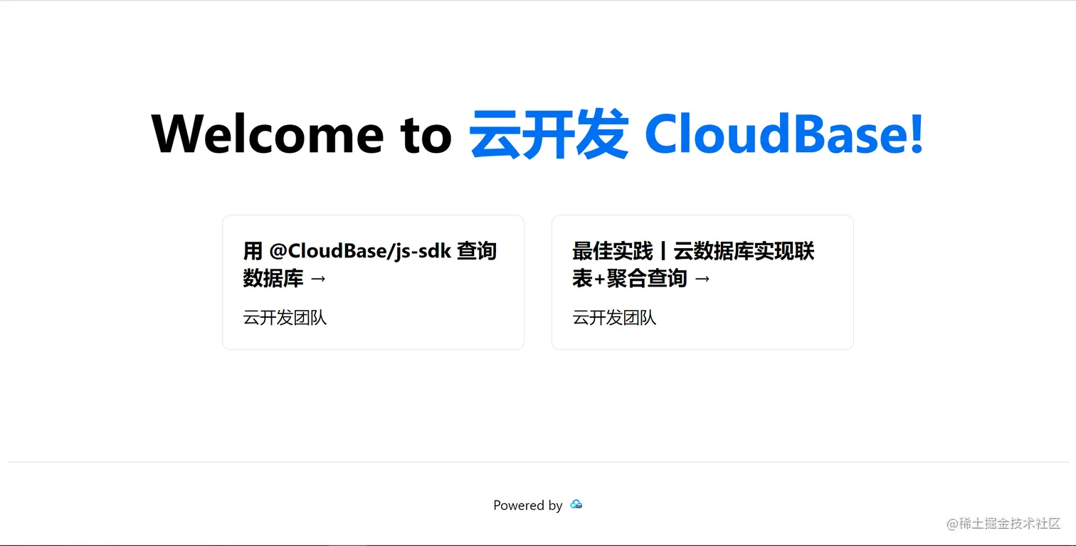 Welcome to <a href="https://www.cloudbase.net/">云开发 CloudBase!</a>