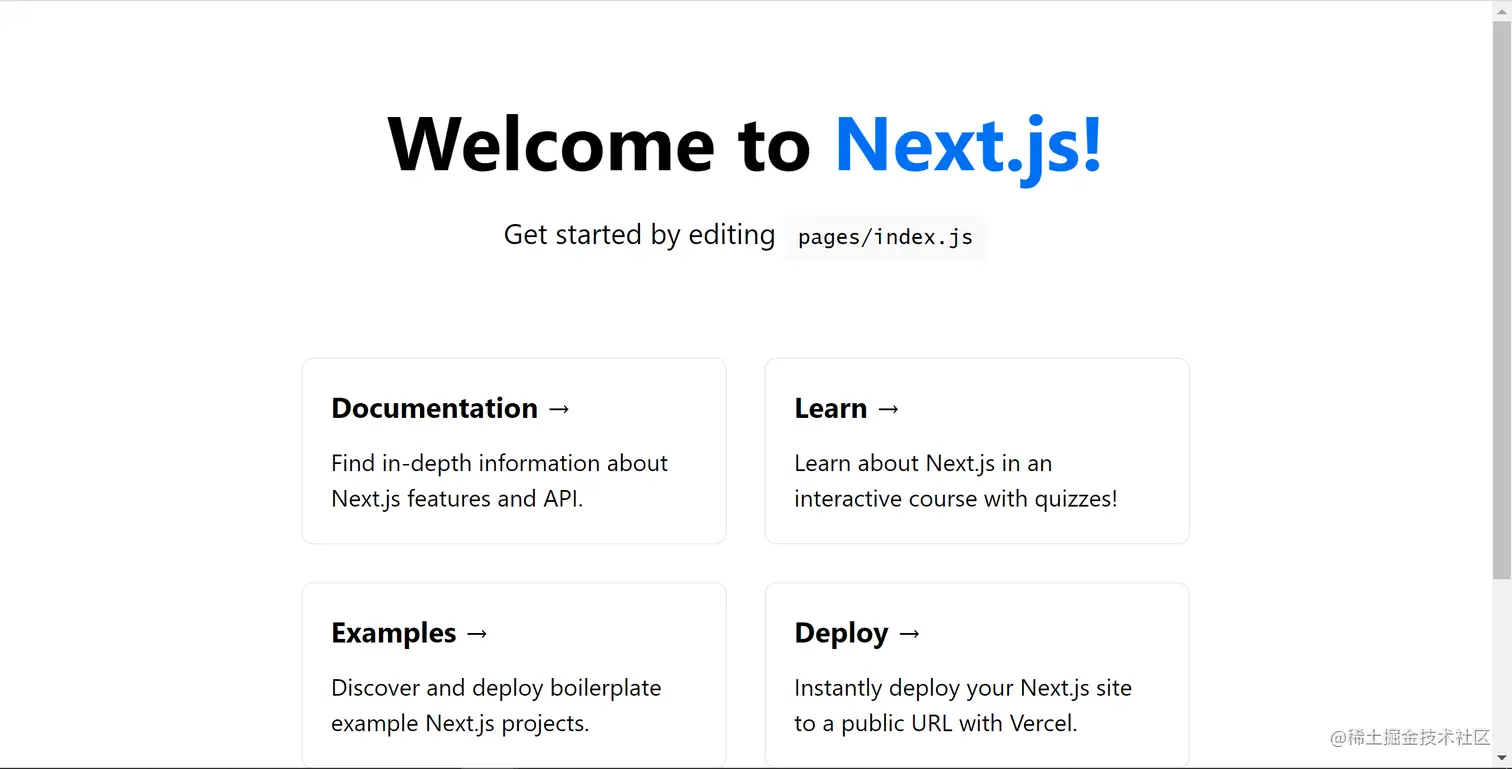 直接在命令行执行以下命令可以创建 Next.js 的样板项目并启动它: