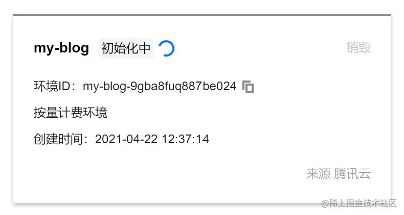 创建环境时,你可以直接选择空模板并勾选免费资源选项即可,最后将环境命名为 my-blog。