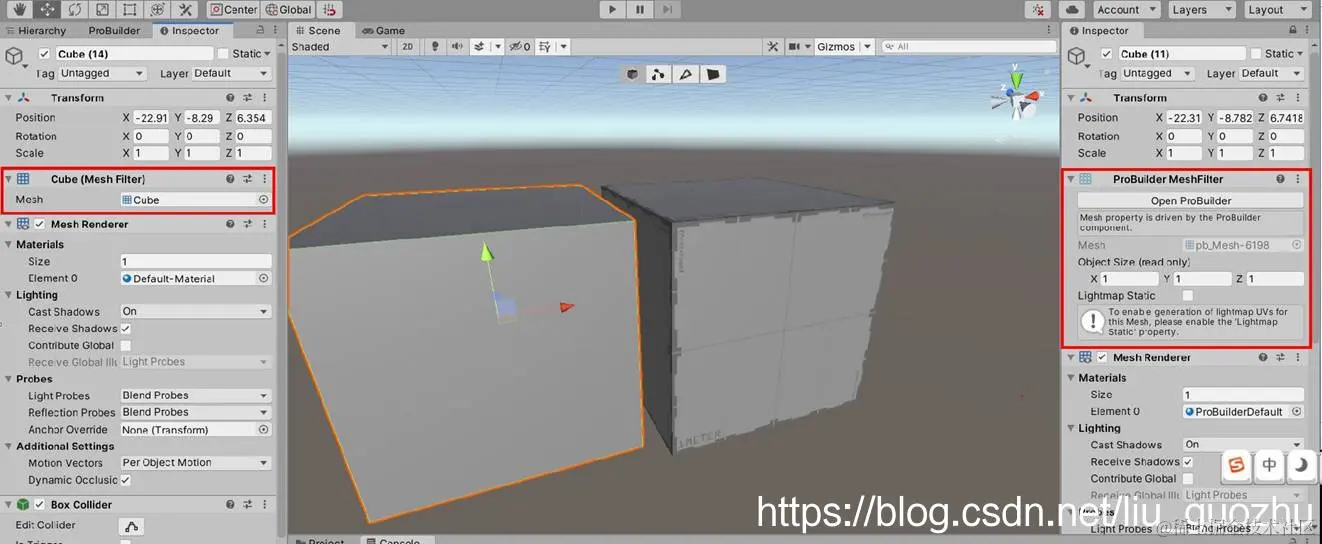 在这里要提及一下,PB建立的模型与传统Unity默认模型,最重要的不同是MeshFilter的不同。