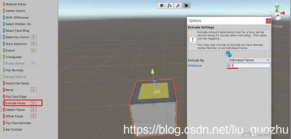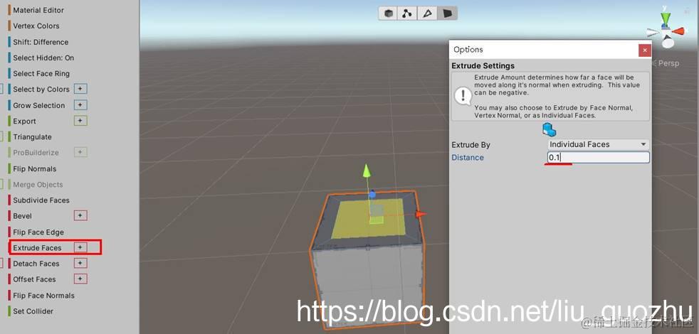 4>面视图中,还可以配合PB面板的“Extrude Faces”,做固定数值的等量延伸(即:“挤出”)操作,见下图所示。