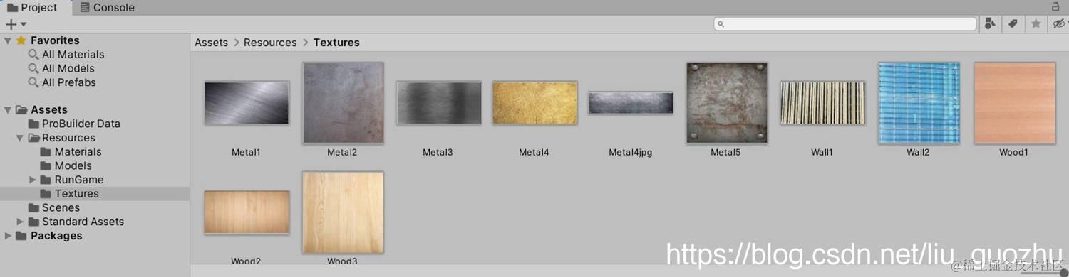 笔者直接网络百度出一些简单木材、金属的贴图,然后导入Unity中如下图。