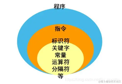 关于程序、指令、标识符、关键字相互的关系,用下图表示: