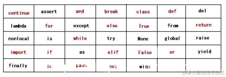 上图就是python语言的33个关键字。