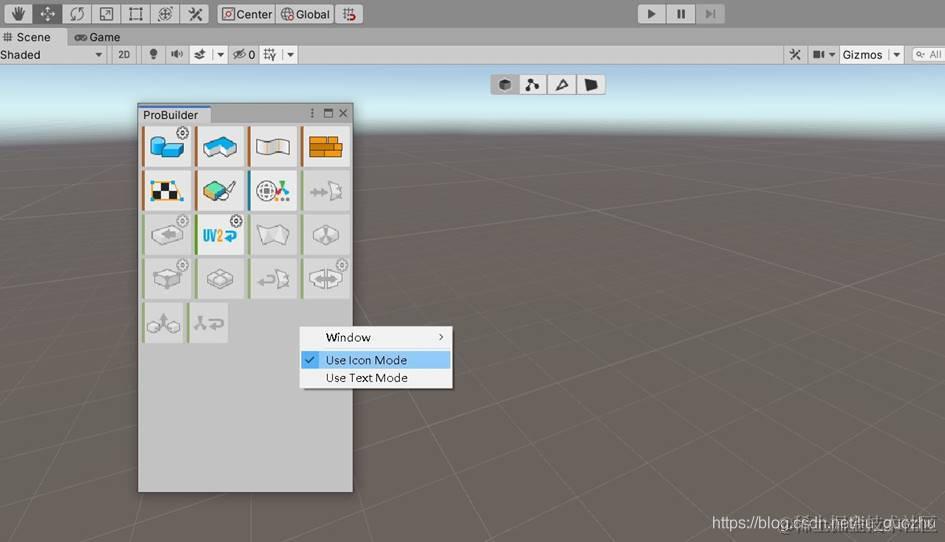 ProBuilder操作面板有两种停靠方式 A: 悬停方式 (Floating window),B:贴附方式(Dockable window)。操作面板两种停靠方式的优缺点说明: