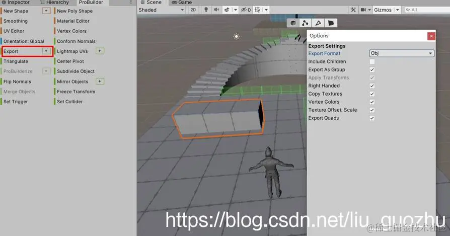 提示:此外模型的导出,也可以使用Unity内置的方式,即导出为*.UnityPackage格式。