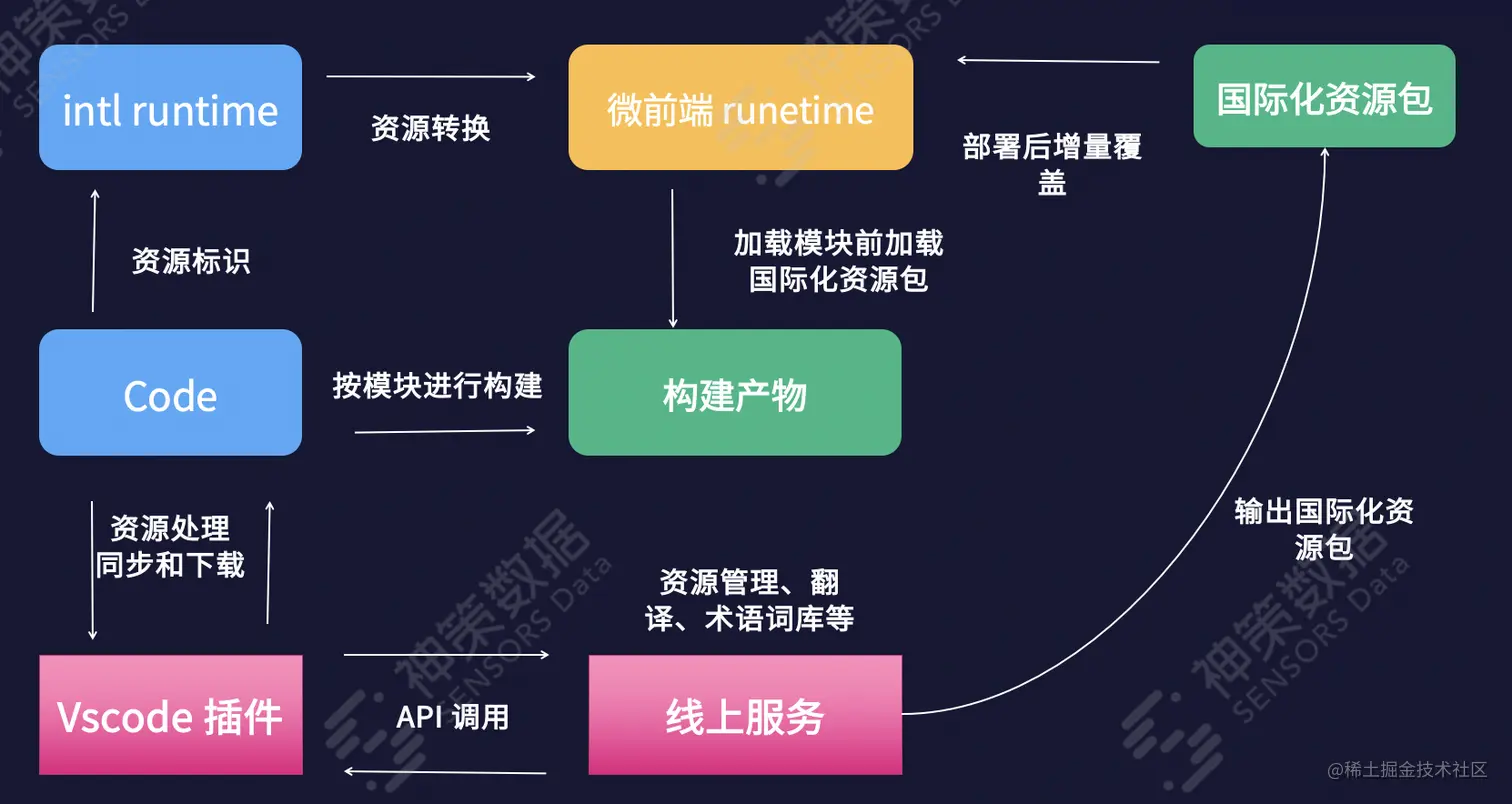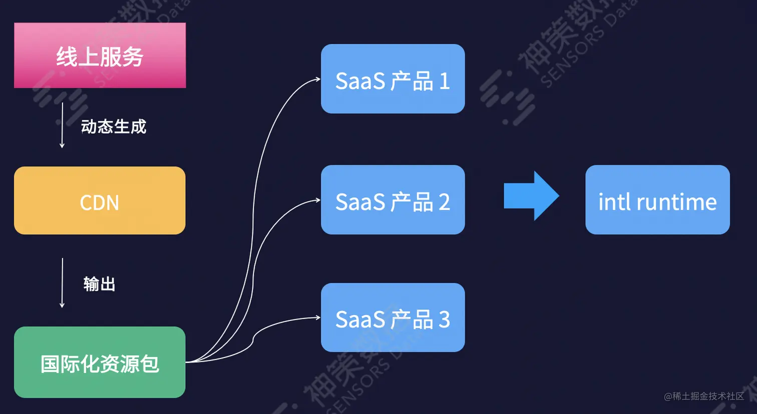 微前端框架:调用 intl runtime,加载资源、目标语言等;也负责外置国际化资源包的加载,实现无发版更新国际化。