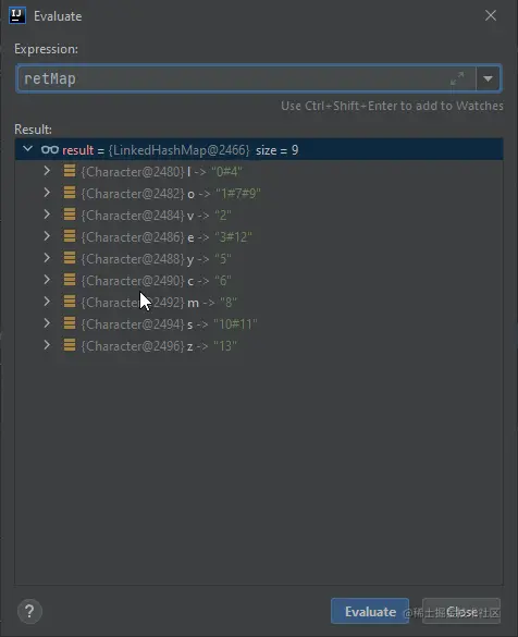 上图是对内存进行分析后,可以看到初始化后的 Map 的值。