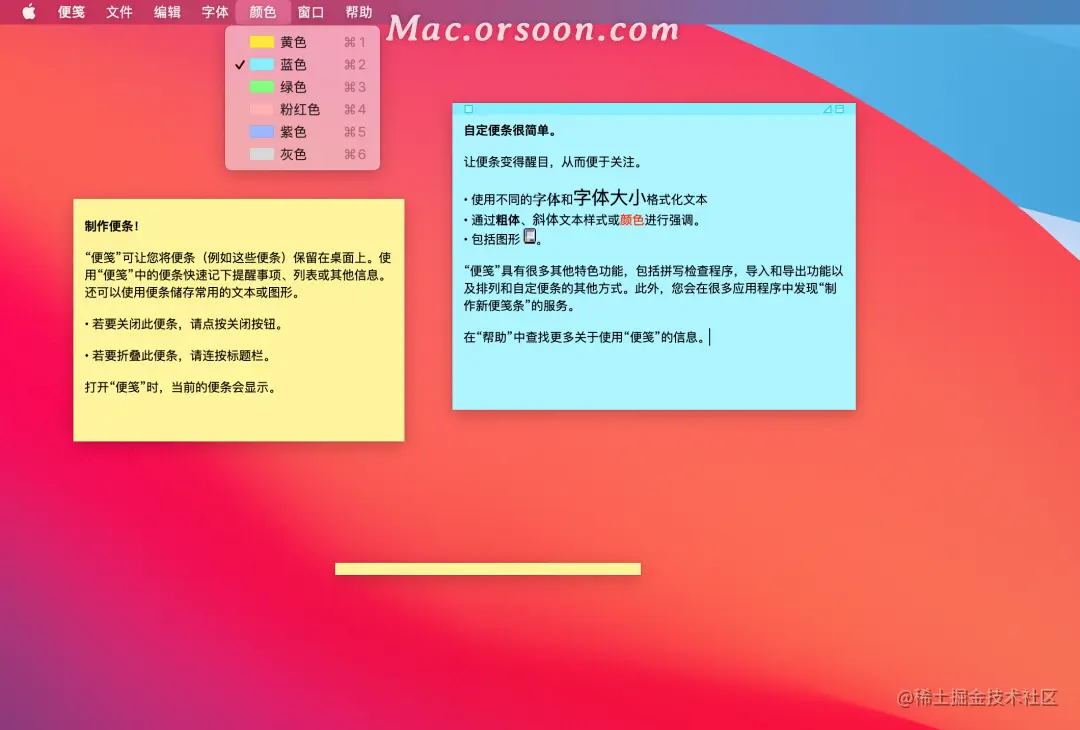 最后介绍的便笺(jiān)或者叫「便签」、「便条」、「便利贴」,可以让你在 Mac 桌面显示多个便笺。
