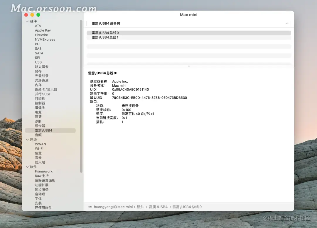 如果想更详细的看到 Mac 的信息,可以点击「系统报告」,或者打开「系统信息」。这里可以看到 Mac 的软件、硬件和网络信息。