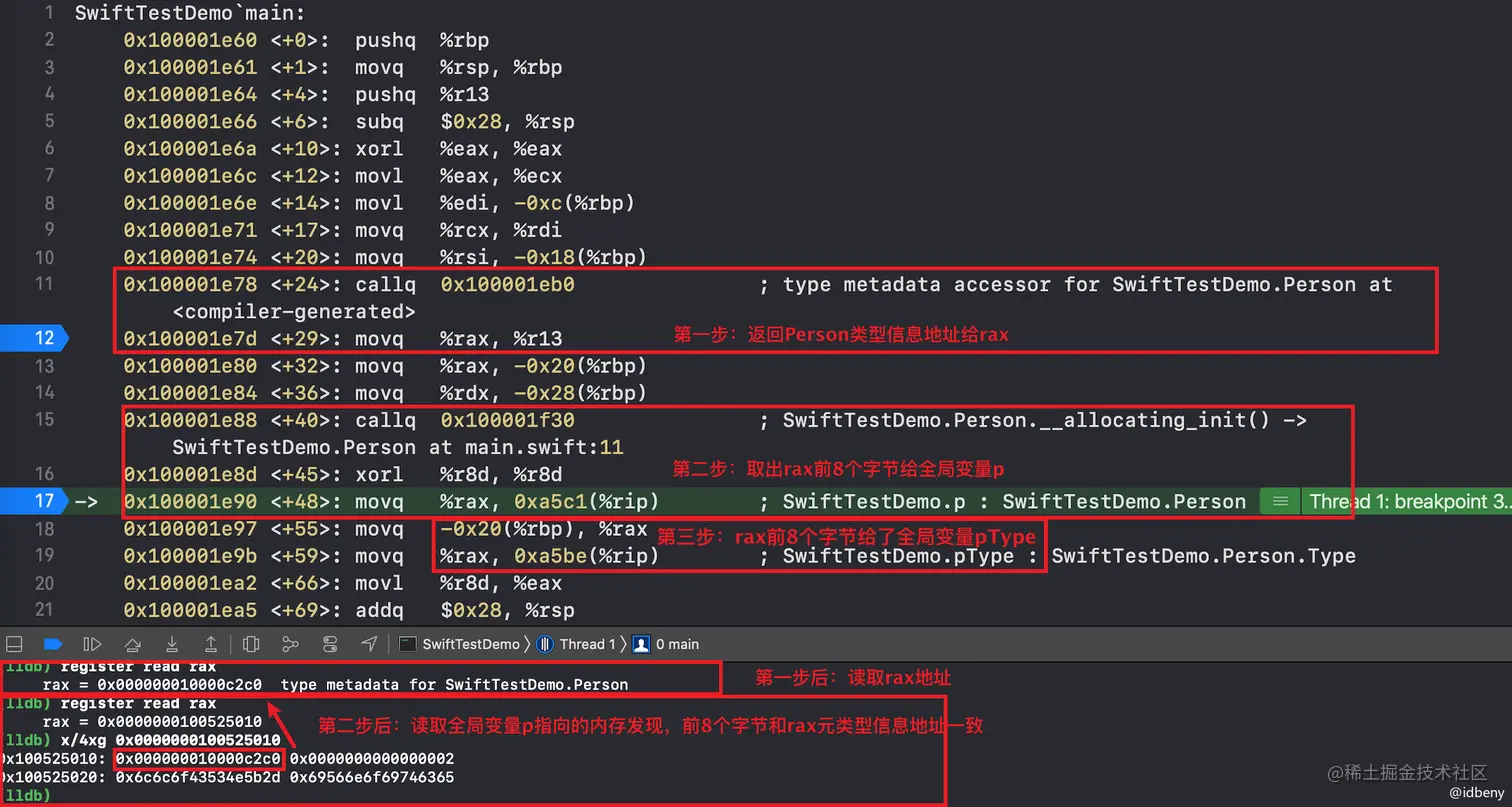 Person.self代表的是指针p指向的实例对象在堆空间存放的前8个字节(元类型信息地址)。