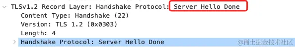 随后,服务端发了「Server Hello Done」消息,目的是告诉客户端,我已经把该给你的东西都给你了,本次打招呼完毕