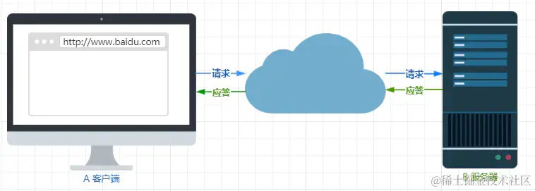 我们在上网冲浪时,浏览器是请求方 A ,百度网站就是应答方 B。双方约定用 HTTP 协议来通信,于是浏览器把请求数据发送给网站,网站再把一些数据返回给浏览器,最后由浏览器渲染在屏幕,就可以看到图片、视频了。