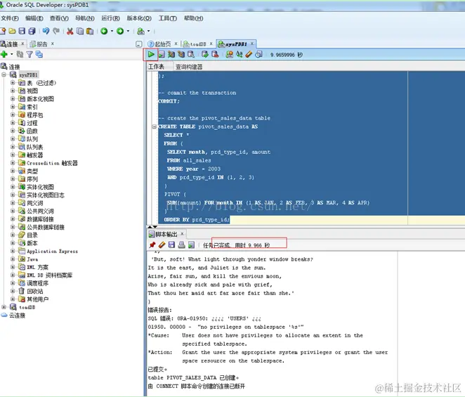 也可以通过SQL_DEVELPER来创建,连接的时候先用SYS用户来连接,然后执行store_schema.sql中的代码即可。如下