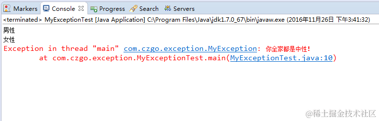 throw new MyException("你全家都是中性!");