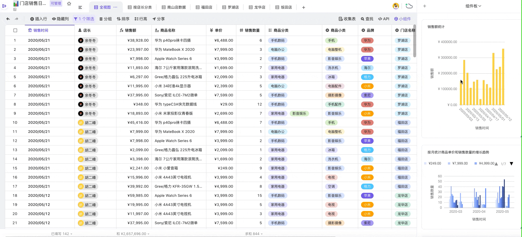 有了这个功能,你不再需要用 「智能公式」去对日期进行格式化,你想要看到哪段时间周期的数据就可以用「图表」直接进行展示。
