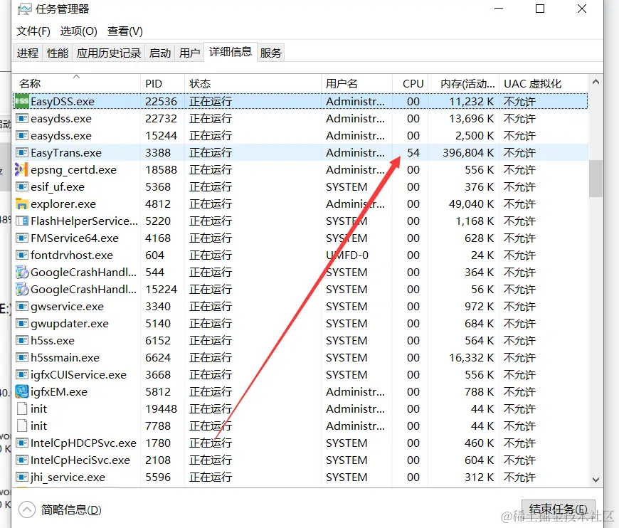 首先,我们就要定位一下是哪个程序耗能过高,通过检查可以得知,主要的问题在EasyTrans这个程序上。