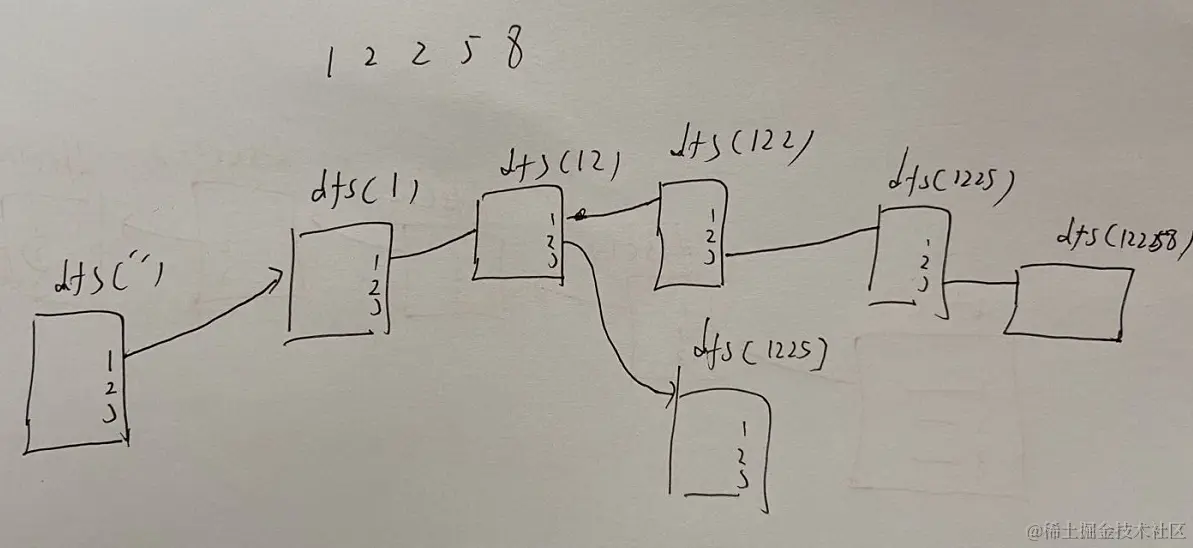 - 递归的结束条件是字符串的长度达到了输入数字的长度