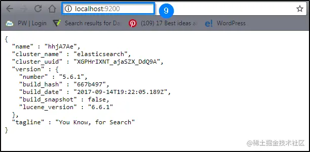 **第 IX 步:**要检查服务器是否已启动,请转到浏览器并键入 localhost:9200。