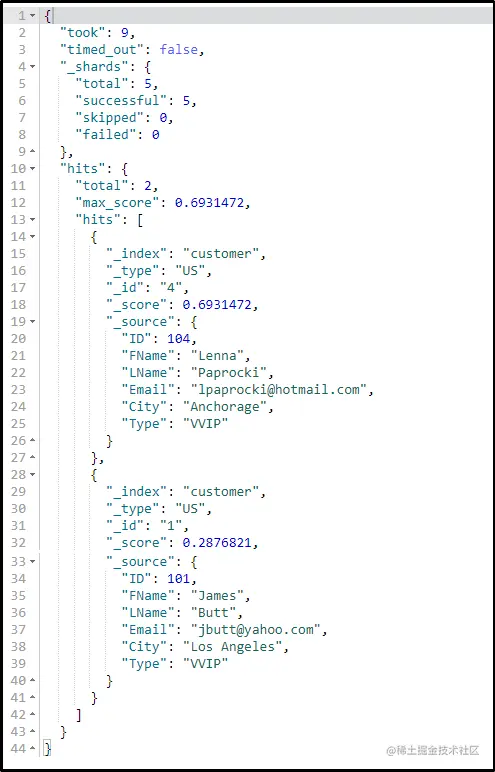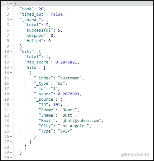 现在,让我们尝试搜索“customer”索引中存在的所有客户的详细信息。