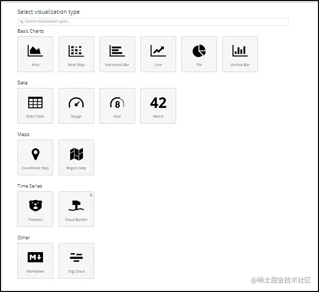 可视化页面使您可以可视化以图表、条形图、饼图等形式显示在 Elasticsearch 索引中的数据。您甚至可以在此处构建仪表板,这些仪表板将基于 Elasticsearch查询显示相关的可视化效果。通常,使用一系列 Elasticsearch 聚合查询来提取和处理数据。当您转到“可视化”页面并搜索保存的可视化时,或者可以创建一个新的可视化。