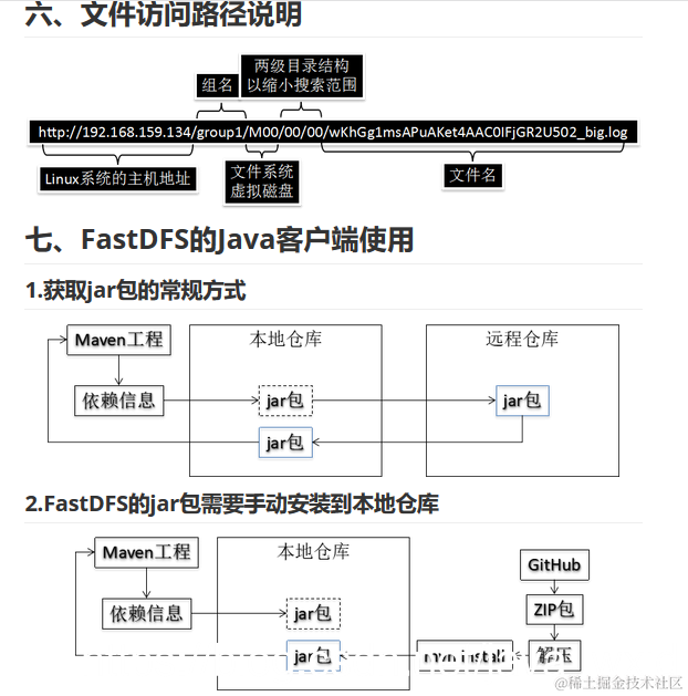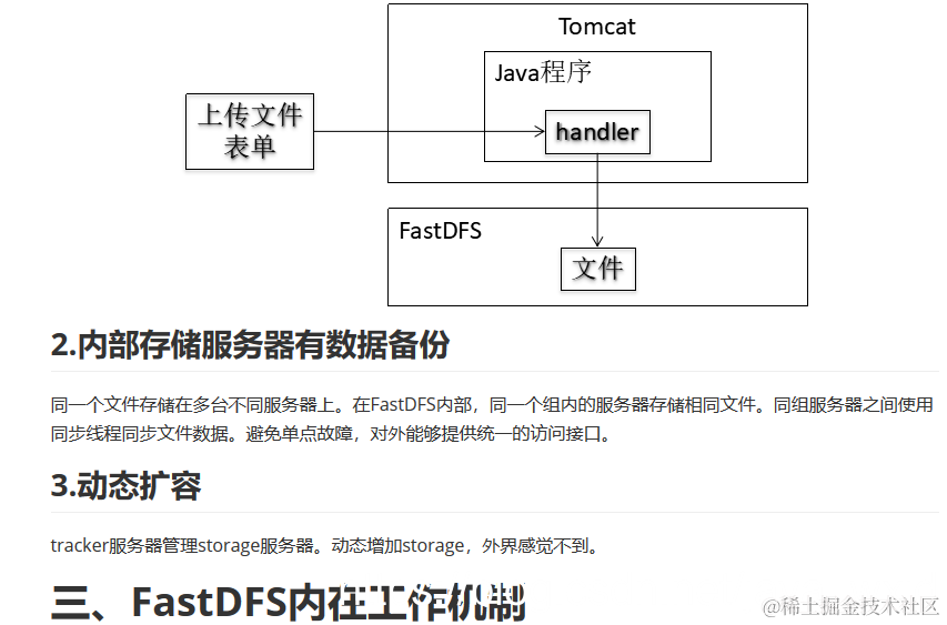 FastDFS架构包括Tracker server 和 Storage server 。客户端请求Tracker server 进行文件上传、下载,通过Ttacker server 调度,最总由Storage server 完成文件上传和下载。