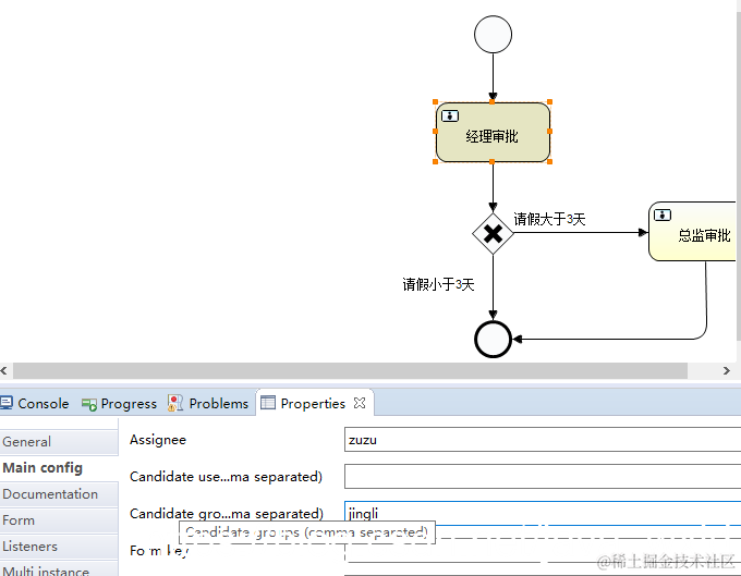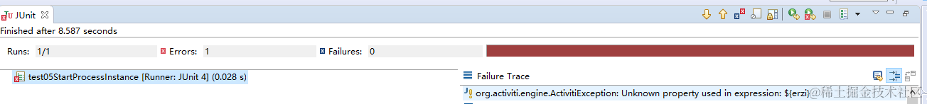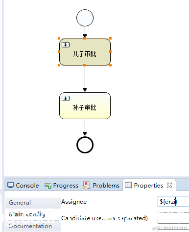 带有变量的流程启动时,如果第一个任务中就存在变量,那么启动的时候就必须给出变量值。否则将抛出异常:org.activiti.engine.impl.javax.el.PropertyNotFoundException: Cannot resolve identifier 'erzi'