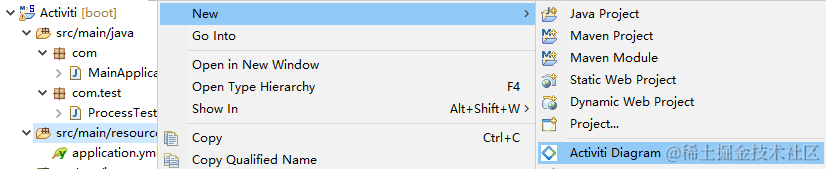 在src/main/java目录下创建processes目录,否则将抛出异常:java.io.FileNotFoundException: class path resource [processes/] cannot be resolved to URL because it does not exist。processes目录的作用是存放bpmn流程定义文件,并对bpmn文件进行自动部署。如果创建到src/main/resources目录下则要求processes目录下至少存在一个文件(任意)。