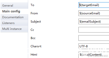 | @Configurationpublic class ActivitiConfig implements ProcessEngineConfigurationConfigurer {@Overridepublic void configure(SpringProcessEngineConfiguration processEngineConfiguration) {processEngineConfiguration.setActivityFontName("宋体");processEngineConfiguration.setLabelFontName("宋体");**processEngineConfiguration.setMailServerPort( **25 ****);****processEngineConfiguration.setMailServerHost( ****"192.168.136.210" ****);}} |