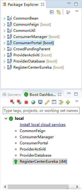 在ConsumerPortal子工程的pom.xml中创建依赖管理和构建管理
