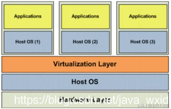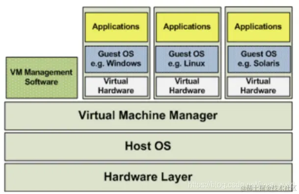 虚拟机的监视器(hypervisor)是类似于用户的应用程序运行在主机的OS之上,如VMware的workstation,这种虚拟化产品提供了虚拟的硬件。