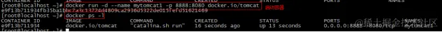 | docker run -di --name=pinyougou_tomcat -p 9000:8080-v /usr/local/myhtml:/usr/local/tomcat/webapps --privileged=true tomcat:7-jre7 |
