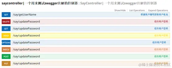 @Api(value = "SayController|一个用来测试swagger注解的控制器")
