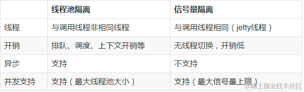 (1)线程池隔离模式:使用一个线程池来存储当前请求,线程池对请求作处理,设置任务返回处理超时时间,堆积的请求先入线程池队列。这种方式要为每个依赖服务申请线程池,有一定的资源消耗,好处是可以应对突发流量(流量洪峰来临时,处理不完可将数据存储到线程池队里慢慢处理)