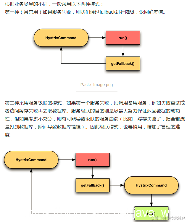 如果在执行降级时发生失败,Hystrix会根据不同的执行方法作出不同的处理: