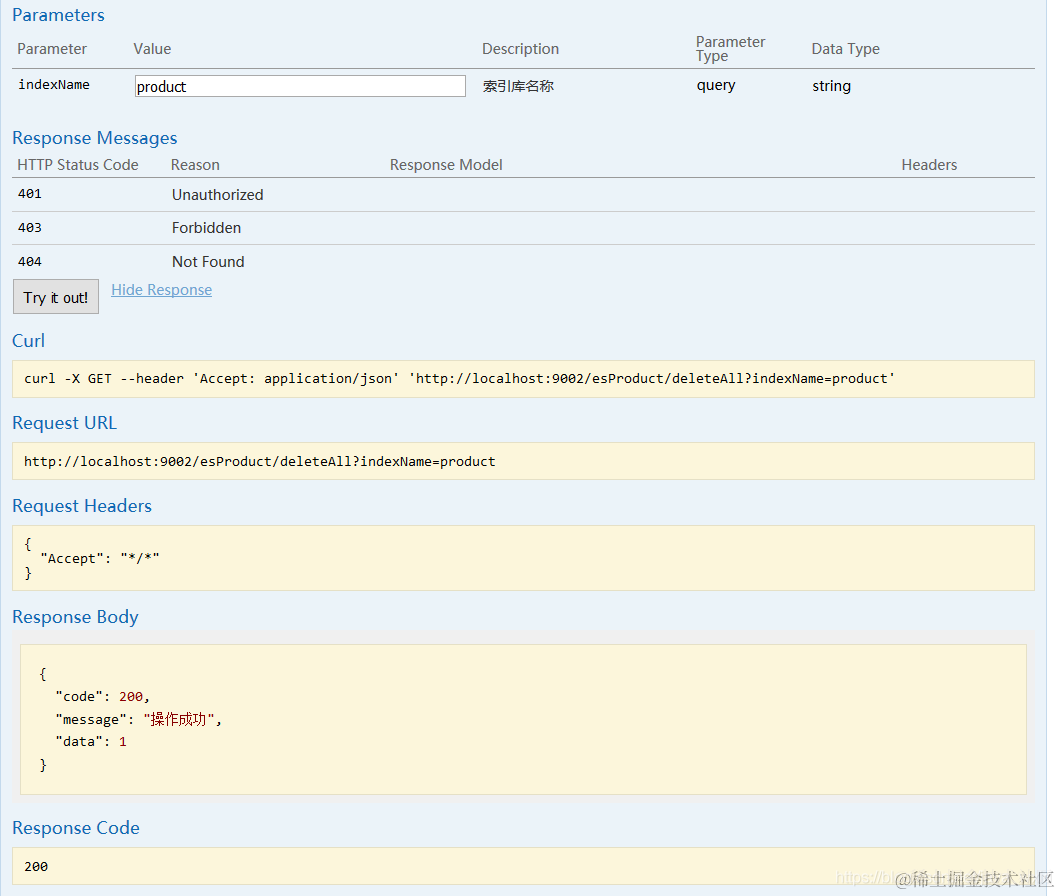@ApiImplicitParam(name = "indexName", value = "索引库名称",
