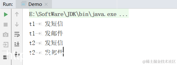 System.out.println(Thread.currentThread().getName()+"\t 发短信");
