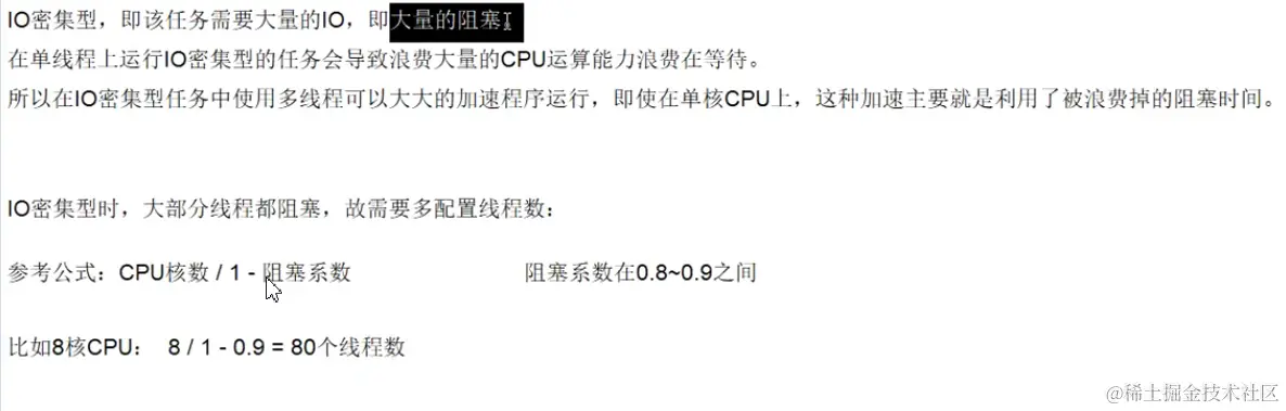 IO密集型:cpu的核数*10(一般阻塞系统是0.9)