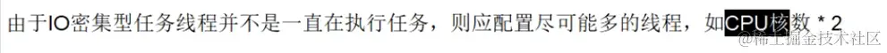 a)假如是业务时间长集中在IO操作上,也就是IO密集型的任务,因为IO操作并不占用CPU,所以不要让所有的CPU闲下来,可以适当加大线程池中的线程数目,让CPU处理更多的业务