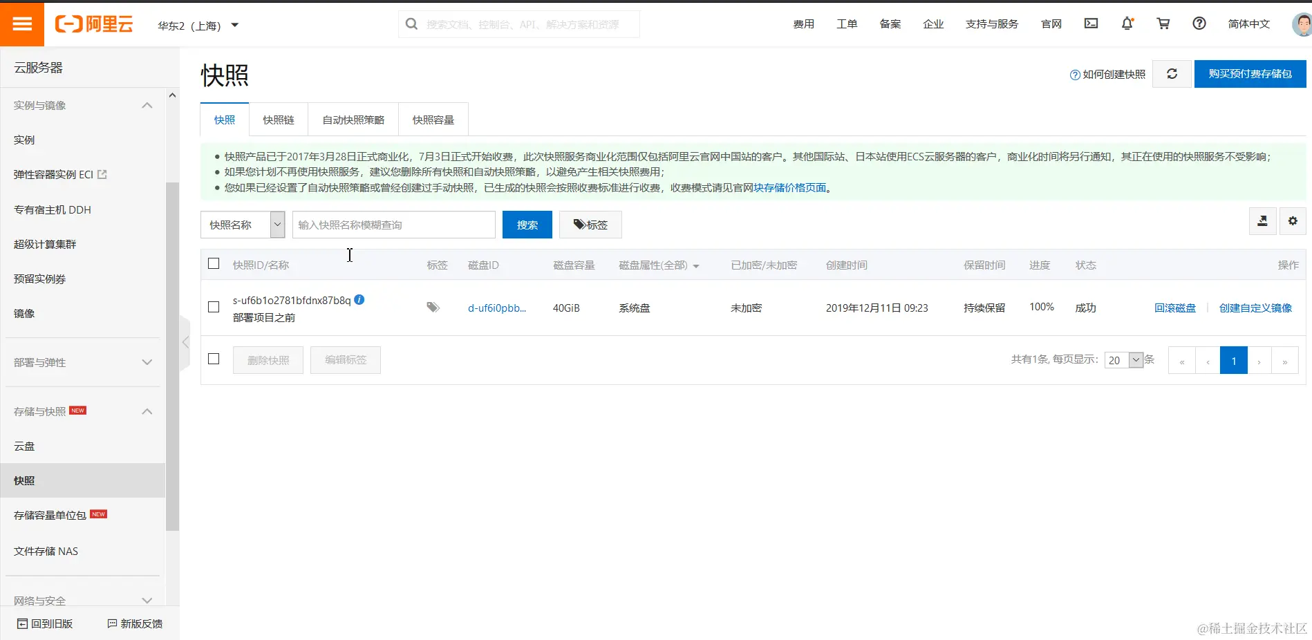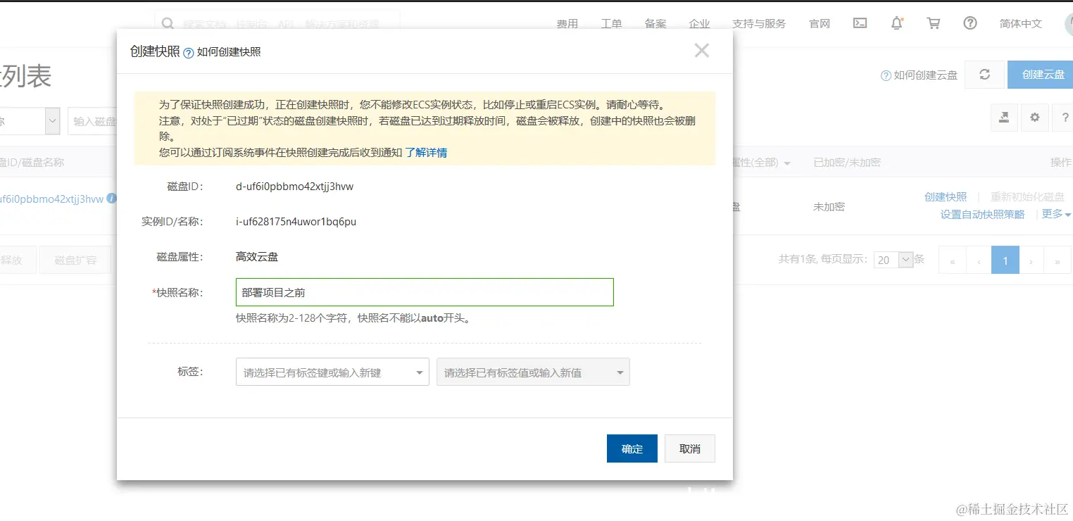 部署项目之前弄个快照