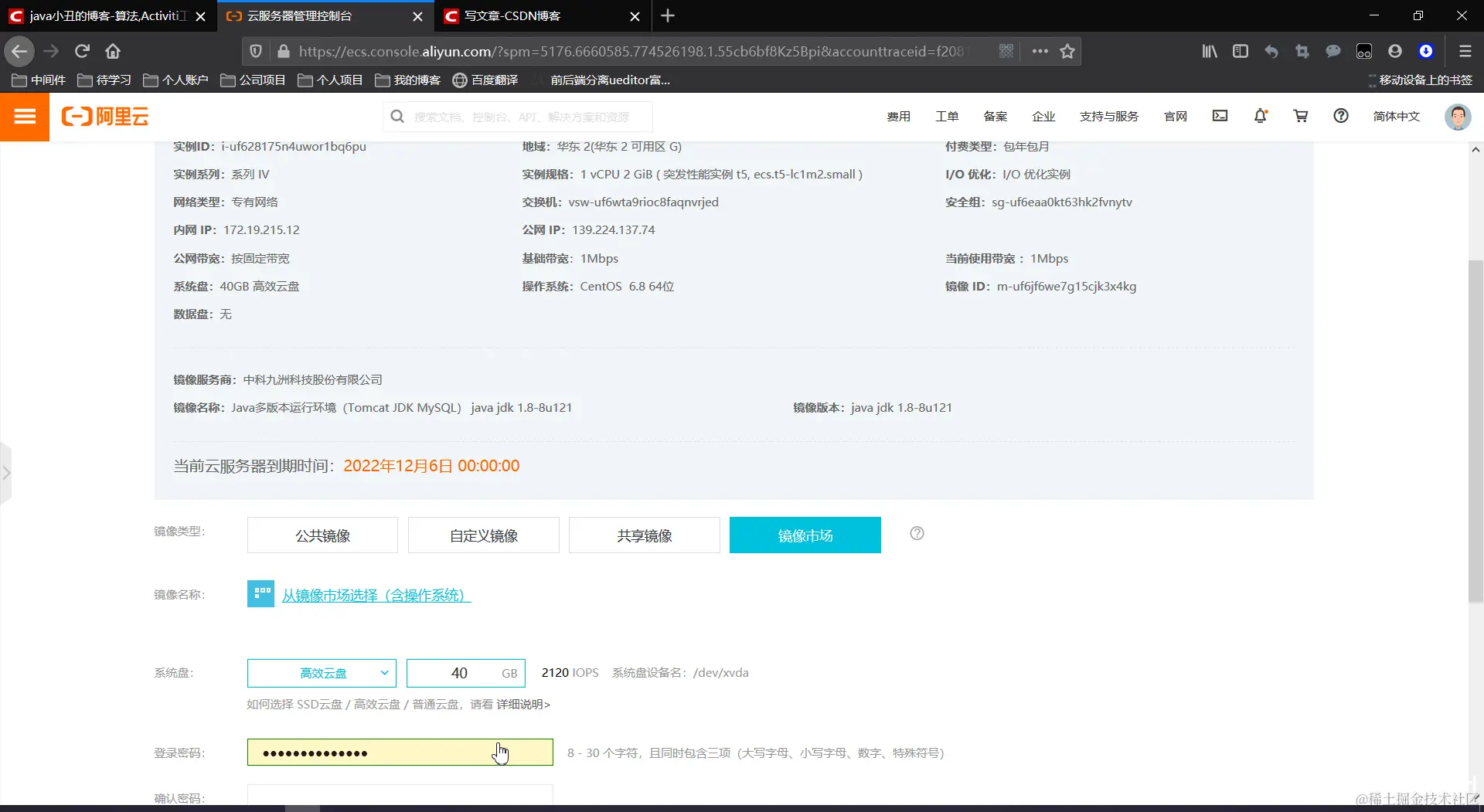 回到镜像选择页面,选择自定义密码,这里的密码是远程连接密码