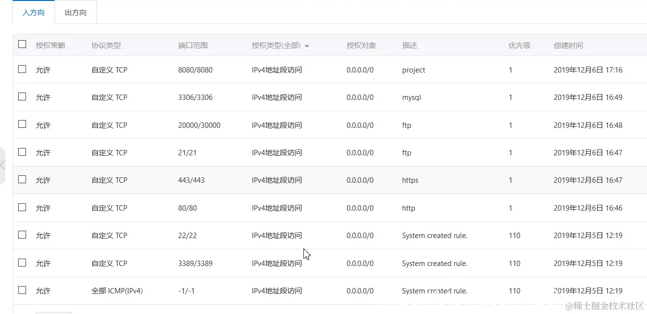我配置的安全组端口
