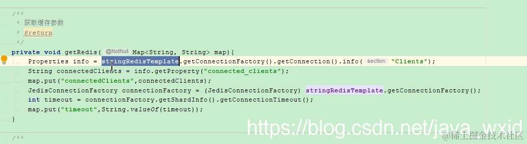 Properties info = stringRedisTemplate.getRequiredConnectionFactory().getConnection().info("memory");