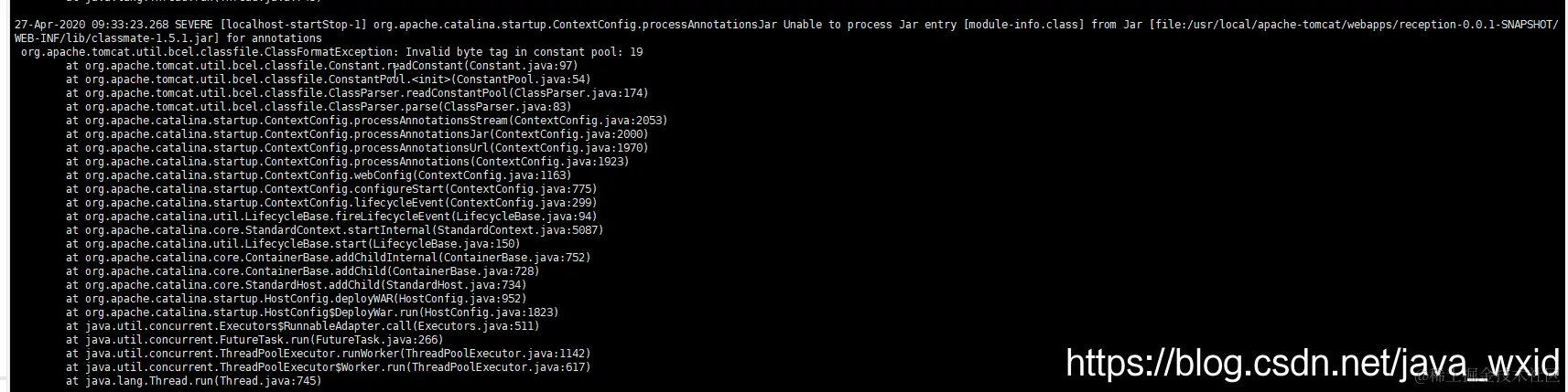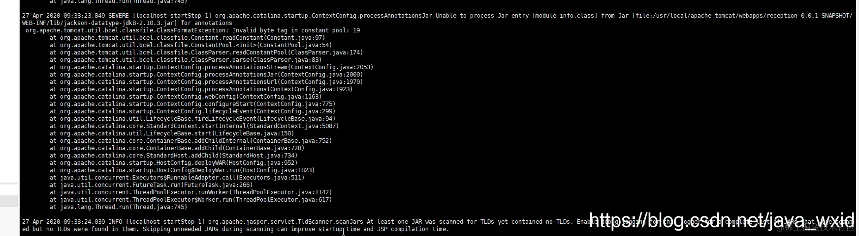 之前我上传了一个类似的jar包,后面改为war包,里面的一些jar包可能起冲突了