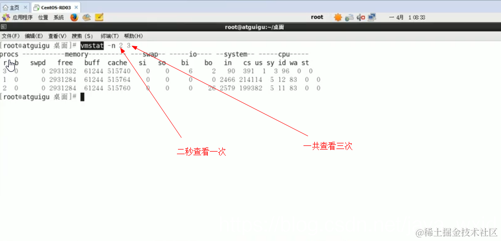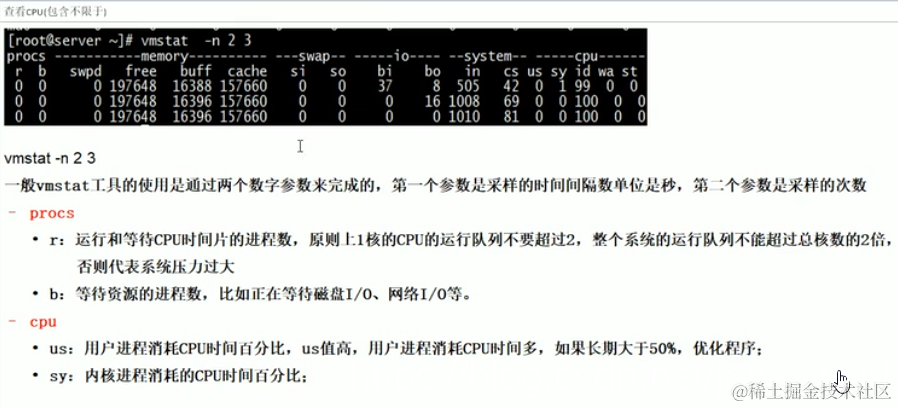 查看CPU:vmstat