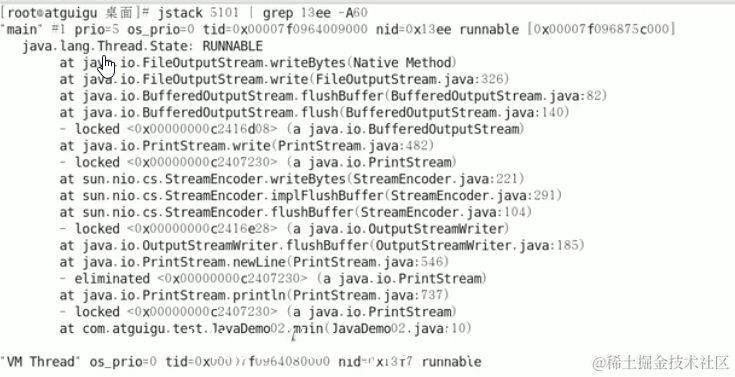 jstack 进程ID | grep tid (16进制线程id小写英文)