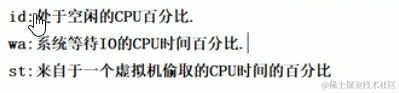 us + sy 参考值为80%,如果us + sy 大于80%,说明可能存在CPU不足。