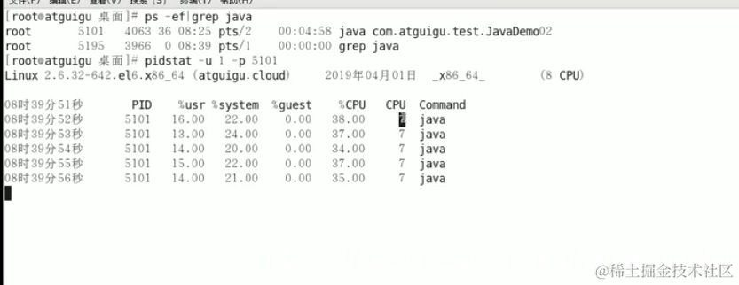 查看进程CPU的情况:pidstat -u 1 -p 进程编号